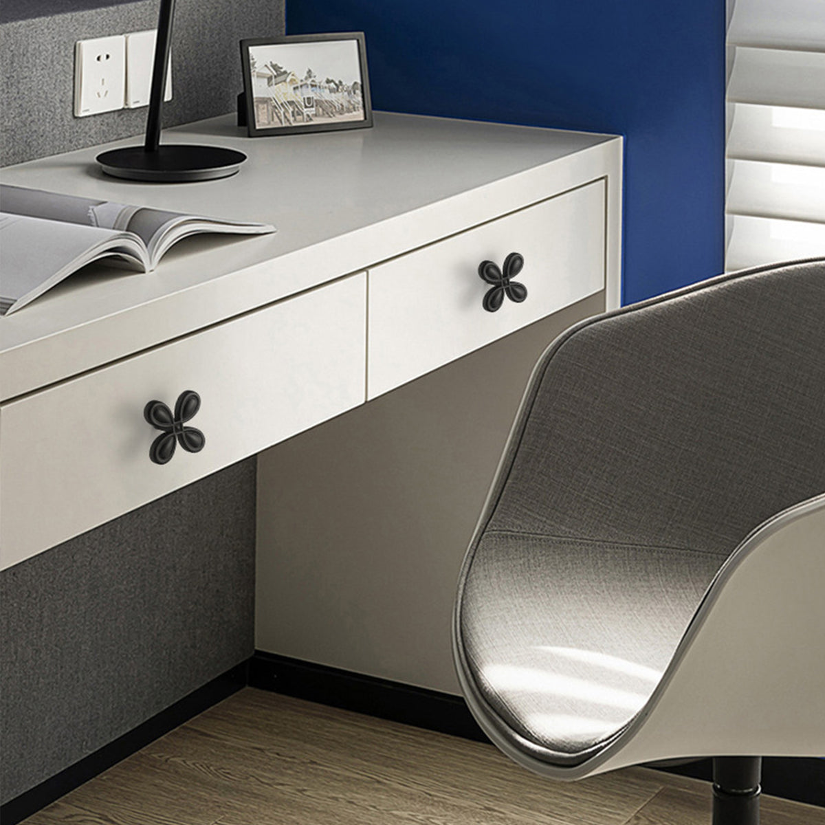 This elegant French-style drawer pull features a unique four-petal design that adds a decorative touch to any cabinet or wardrobe. Made from durable materials, it combines style with functionality. Easy to install and available in three classic colours, it is ideal for drawers, cupboards, and wardrobe doors.