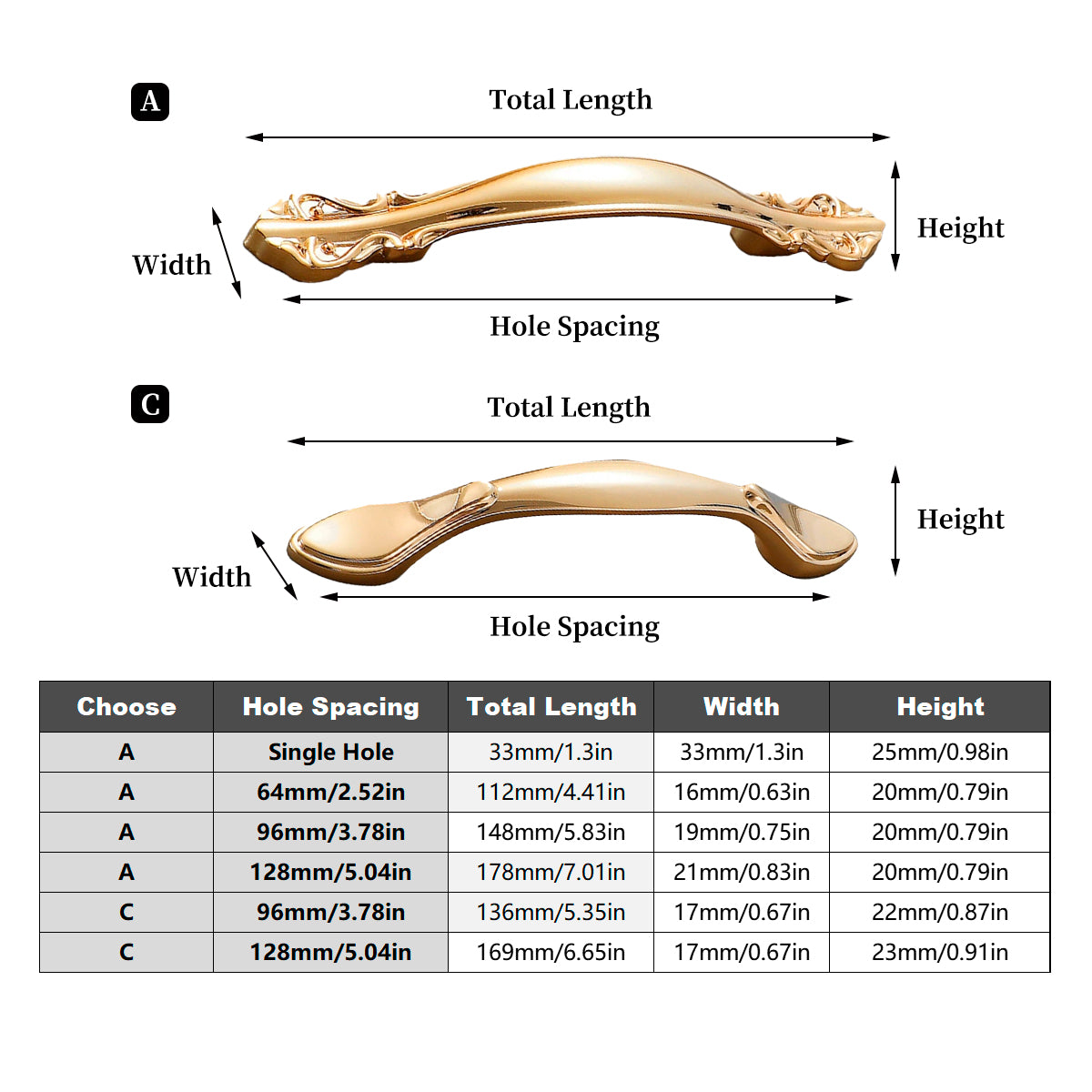 Elevate your furniture with these golden brass cabinet handles. Available in A and C series with various sizes, they blend traditional craftsmanship with modern design. Made from high-quality brass with multi-layer plating, these handles are durable and rust-resistant, suitable for cabinets, drawers, and doors in kitchens, bathrooms, or living rooms.