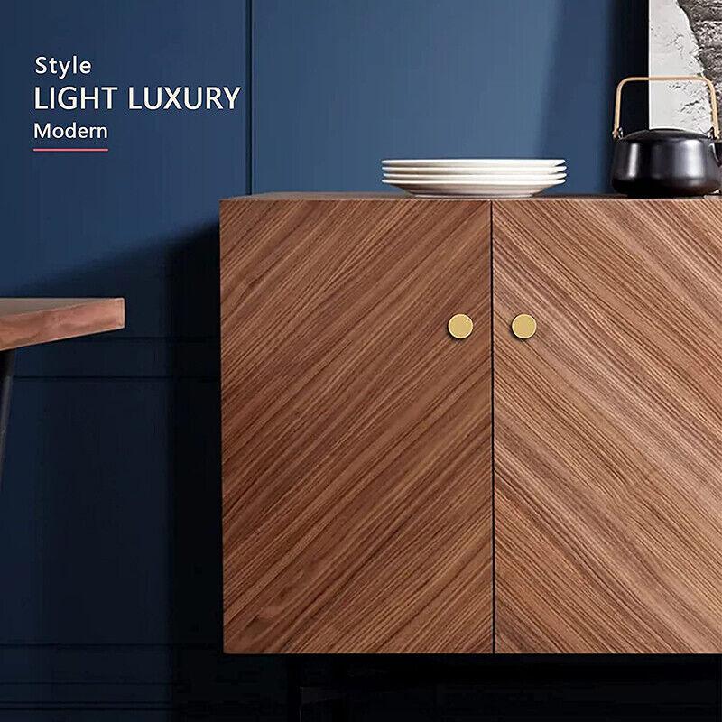 Gold Finish Solid Brass Round Cabinet Knobs Single-Hole Pulls
