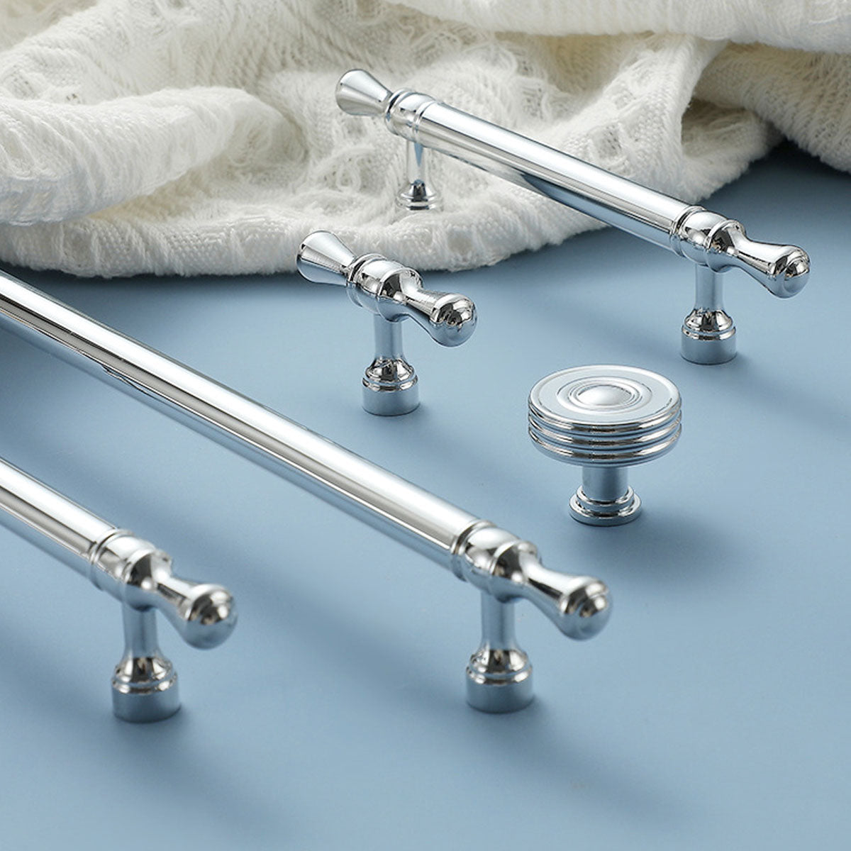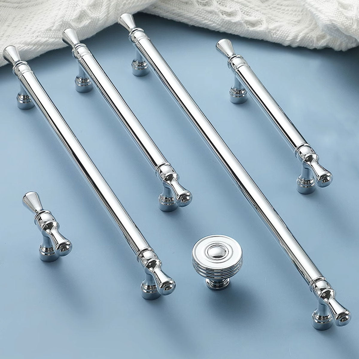 Upgrade cabinets, drawers, and wardrobes with these modern silver handles. Crafted from durable copper with a polished finish, they offer a sleek look and an ergonomic grip that suits contemporary, classic, and vintage interiors.